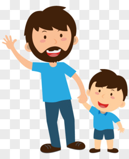 手绘卡通爸爸抱着儿子户外游玩插画免抠元素
