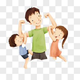 卡通手绘爸爸陪儿子玩耍免抠素材