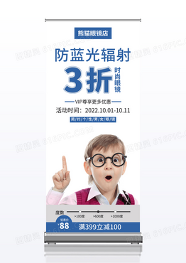 蓝色简约防蓝光辐射眼镜店促销活动展架易拉宝眼镜展架
