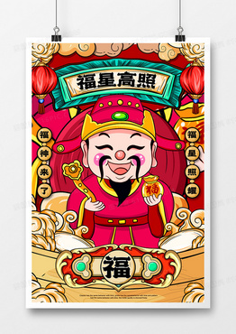 创意手绘国潮风新年福神福禄寿喜系列海报设计