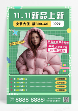 绿色渐变双十一大促服饰箱包双十一营销海报
