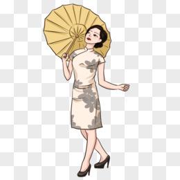 手绘全身旗袍女人元素
