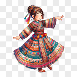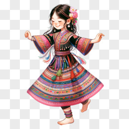 穿民族服饰跳舞的少女插画