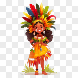 卡通风各国人物服饰印第安人羽毛冠免抠元素