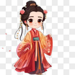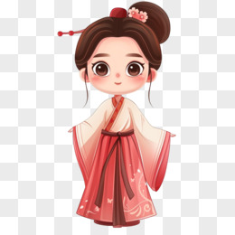 手绘卡通穿民国服饰的女孩插画免抠元素
