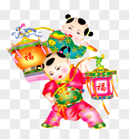 手绘男孩女孩张灯结彩打扫卫生免抠元素