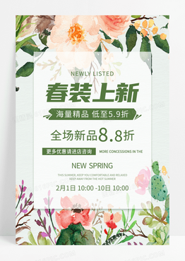 简约春装上新春季服装春季促销海报