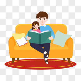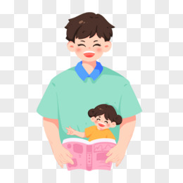 手绘卡通父亲与孩子翻看相册互动免抠元素