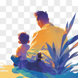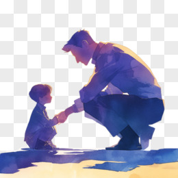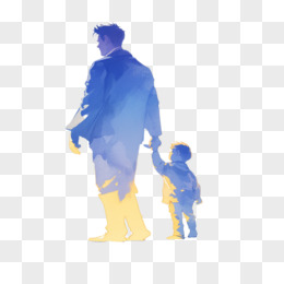 手绘爸爸牵着女儿的手玩耍场景免抠元素