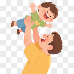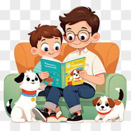 卡通插画风爸爸与孩子一起阅读免抠元素