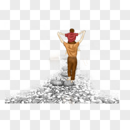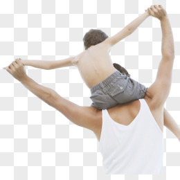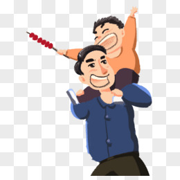 坐在爸爸肩上玩飞机的孩子人物手绘插画