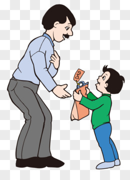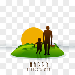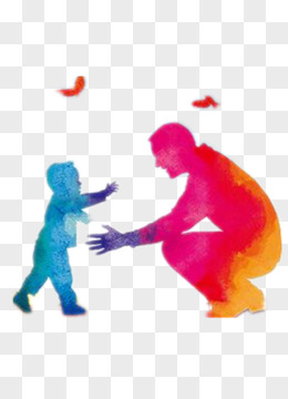卡通手绘父亲和孩子背影免抠元素