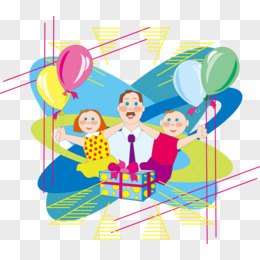 卡通手绘爸爸带孩子手持小旗子庆祝免抠素材