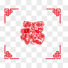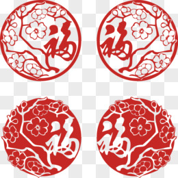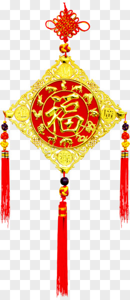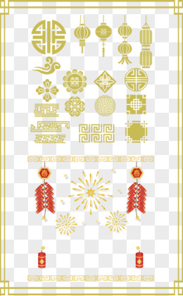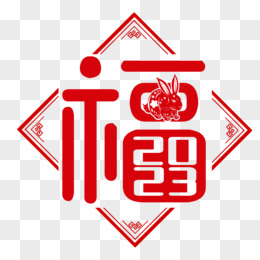 手绘金色浮雕兔子拿着福字剪纸装饰元素
