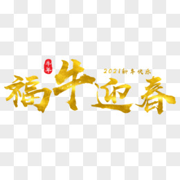 金色福牛迎春毛笔艺术字