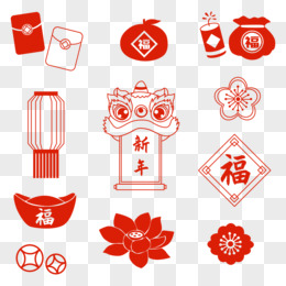一组新年春节装饰图案合集元素