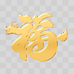 2024龙形福字手写艺术字金色立体设计