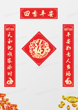 手绘插画风牛年春节习俗牛张贴春联免抠元素