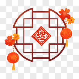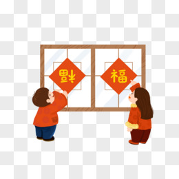 手绘卡通大人张灯结彩小孩们玩耍场景免抠素材