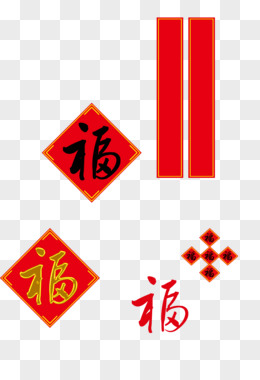 一组手绘立体春节元素合集之福字窗户免抠元素
