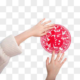 新年贴窗花手拿窗花剪纸免抠实拍图