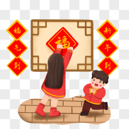 情侣手拿福字遮眼嬉戏免抠实拍元素