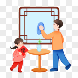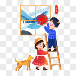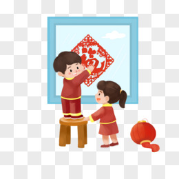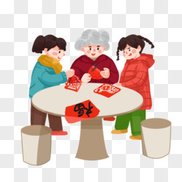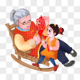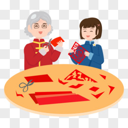 卡通手绘新年老奶奶教孙女剪窗花素材