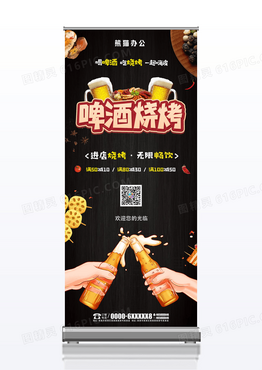 潮流美味喝啤酒吃烧烤生活就该这么爽啤酒节展架