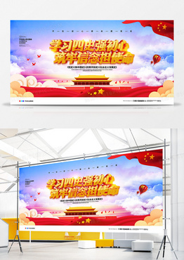 党建简约大气四史学习教育宣传展板设计