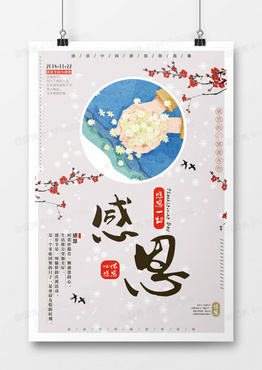 一组手绘感恩节手举牌感恩拍照手举牌套图素材
