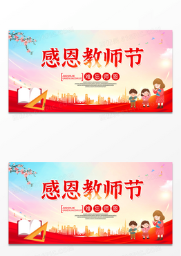 红色渐变感恩教师节幼儿园教师节展板设计