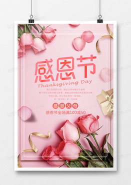 温馨感恩节粉色促销海报