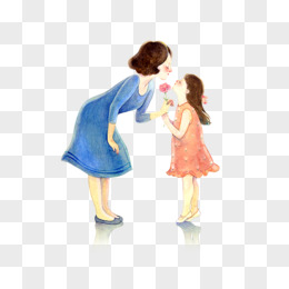 卡通手绘给妈妈送花的女孩