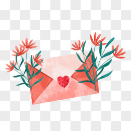 手绘卡通花卉信封免抠素材