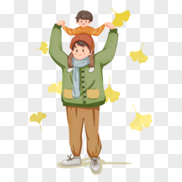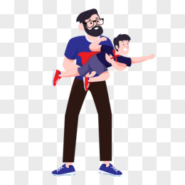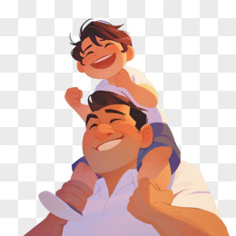 卡通父子儿子坐在爸爸肩膀上免抠元素