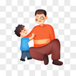 卡通手绘儿子搞怪在爸爸脸上画画免抠素材