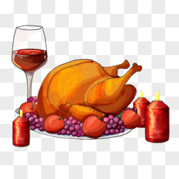 手绘卡通火鸡红酒蜡烛素材