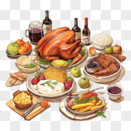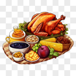 感恩节之手绘卡通男孩拿着餐具吃烤火鸡