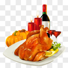 手绘插画风食物火鸡红酒素材