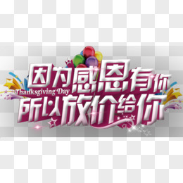 创意艺术字感恩有你免抠元素
