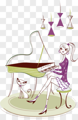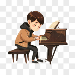 插画学生上钢琴兴趣班免抠元素