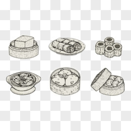 一组卡通水彩风粤式点心小吃合集插画之肠粉元素