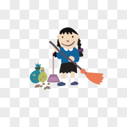 卡通女孩拿着拖把整理打扫房间免抠素材