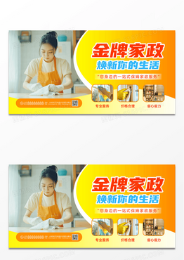 黄色干净简约专业金牌家政保洁服务焕新你的生活宣传展板