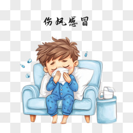 打喷嚏流鼻涕生病感冒插画免抠元素