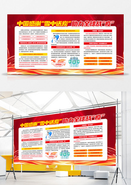 红色简约中国感谢雪中送炭助力全球战疫宣传栏展板设计
