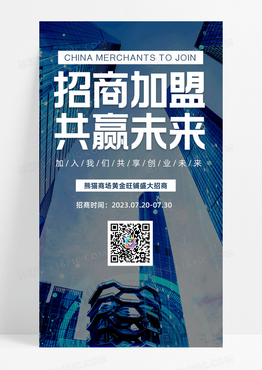 招商加盟共赢未来高楼大厦招商加盟共赢未来高楼大厦简约清新清爽宣传海报招商招租ui手机海报