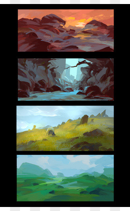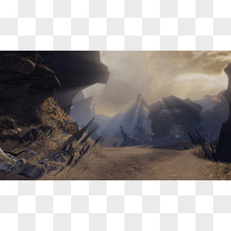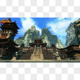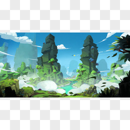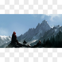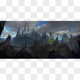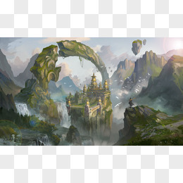 游戏场景重峦叠嶂的高山黄色月亮彩绘
