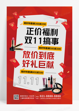 红色大气简约正价福利双11搞事双十一海报