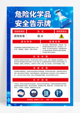 简约蓝色危险化学品安全告示牌海报设计